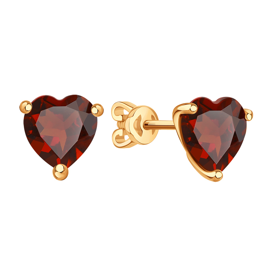 Серьги "Сердца" с гранатами из золота 585 пробы арт. Т10102В781-1