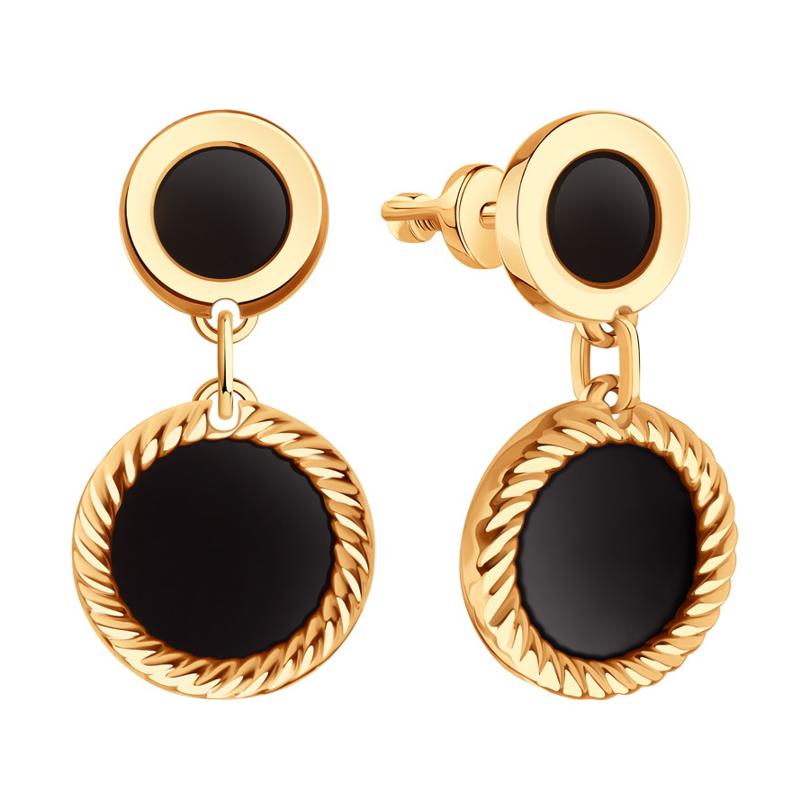 Пуссеты с ониксом из золота 585 пробы арт. Т10302Г501