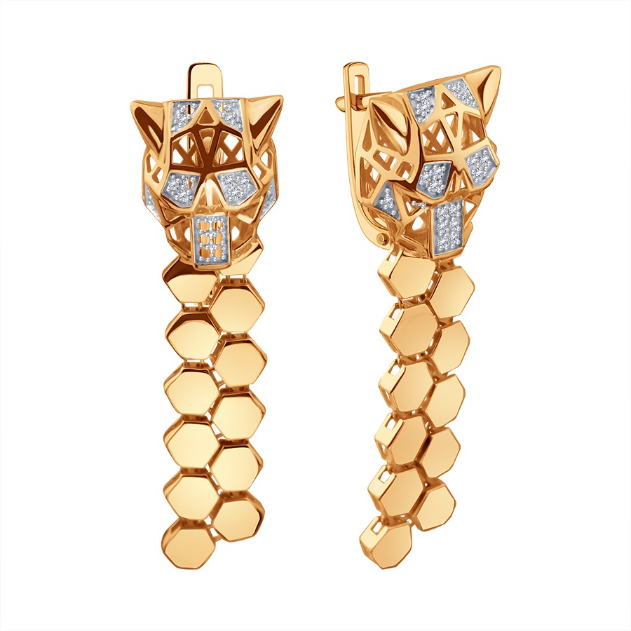Серьги "Пантеры" с бриллиантами из золота 585 пробы арт. Т14102Г597