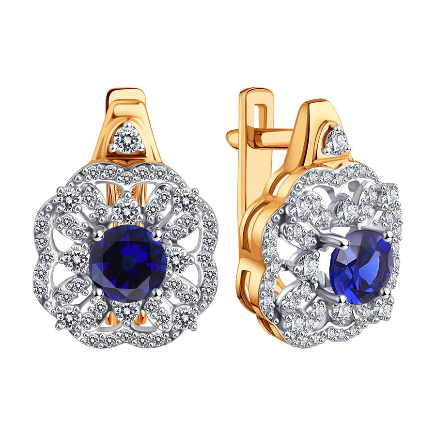 Серьги с бриллиантами и сапфирами из золота 585 пробы арт. Т14102Г713-01-02