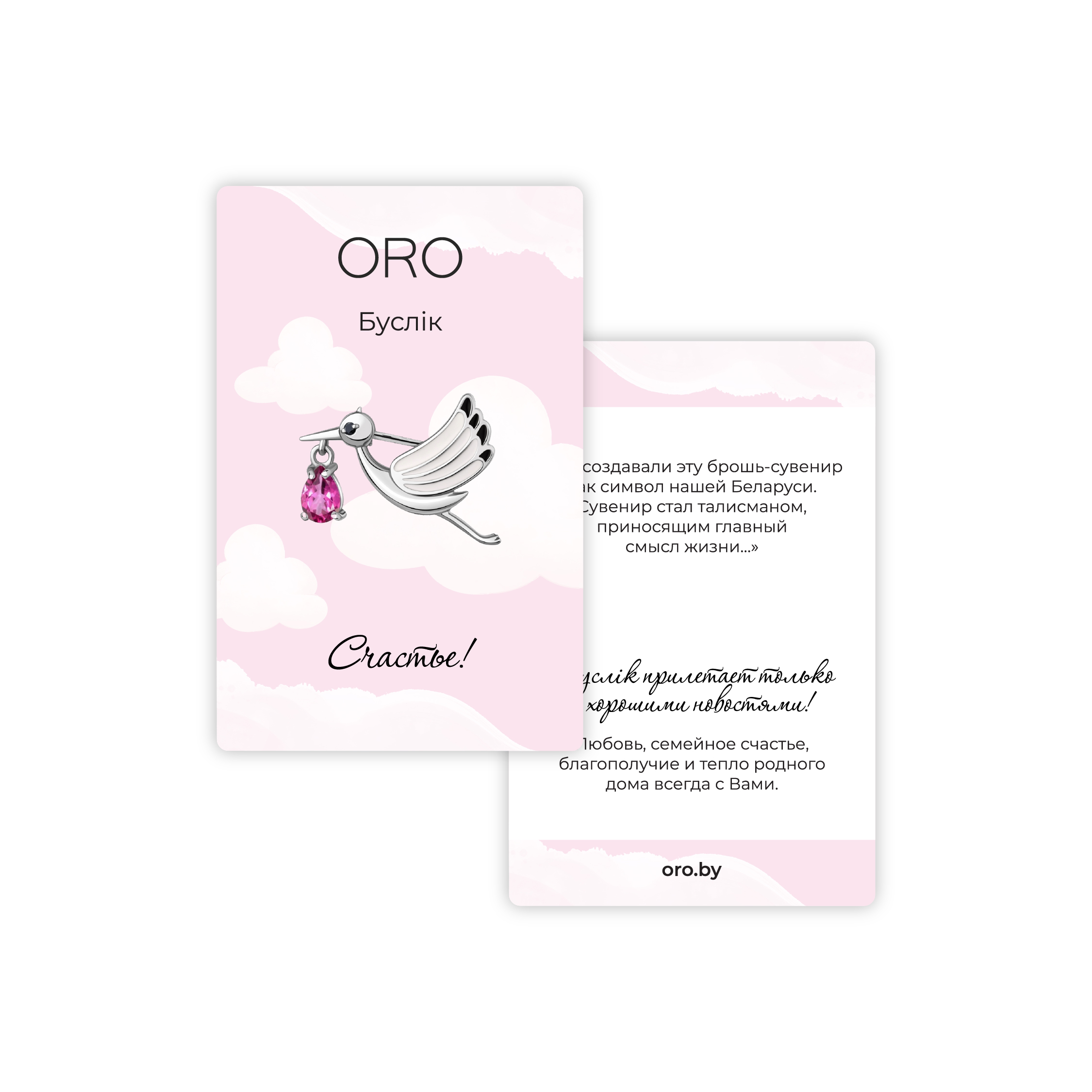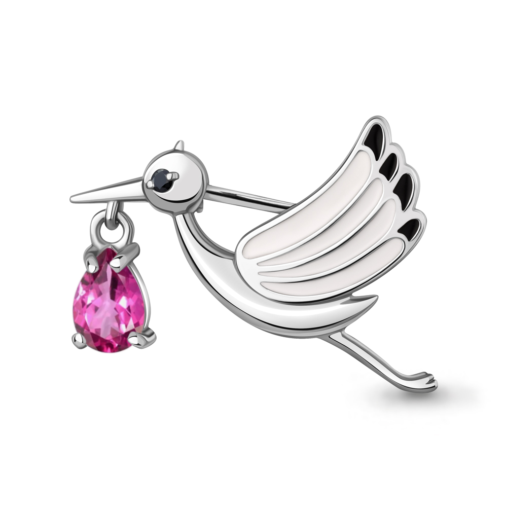 Брошь-талисман "Бусел" с топазом, черным бриллиантом и эмалью из серебра 925 пробы арт. 070095540Ч.5