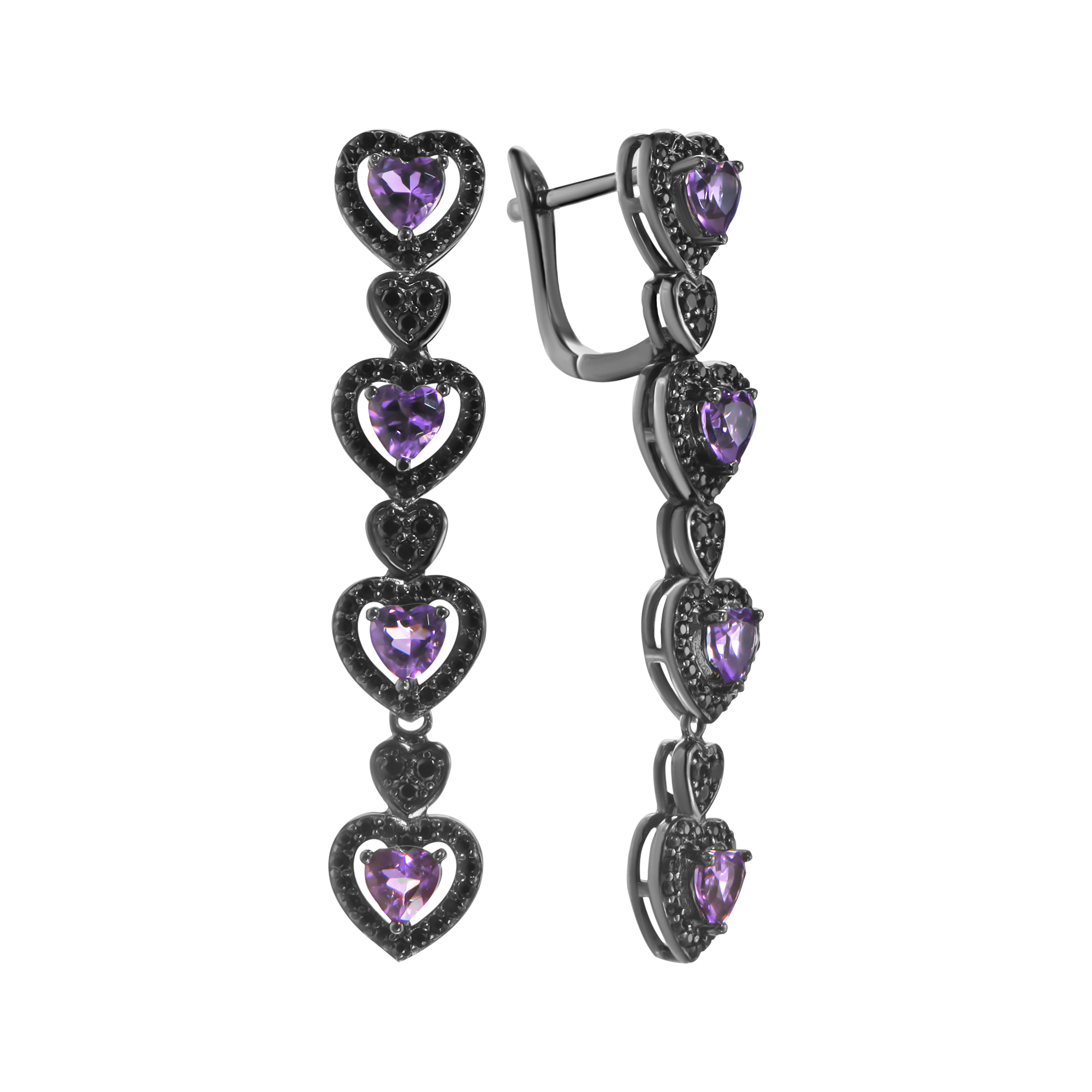 Серьги с аметистом и шпинелью из серебра 925 пробы арт. YE01947_SR_AM_SP_BLK