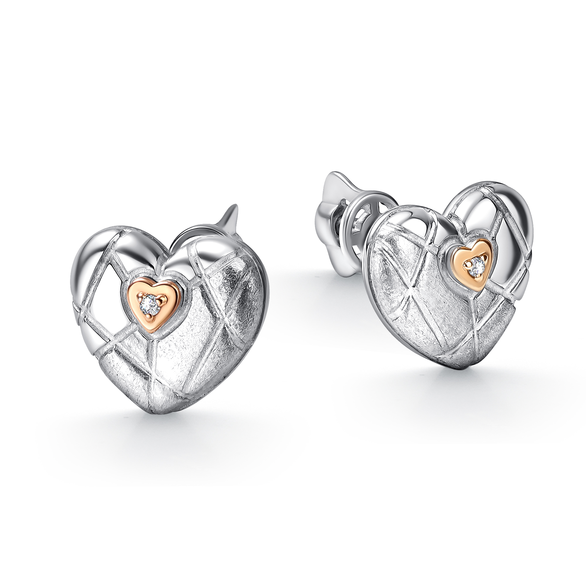 Серьги с бриллиантами и золотой вставкой из серебра 925 пробы