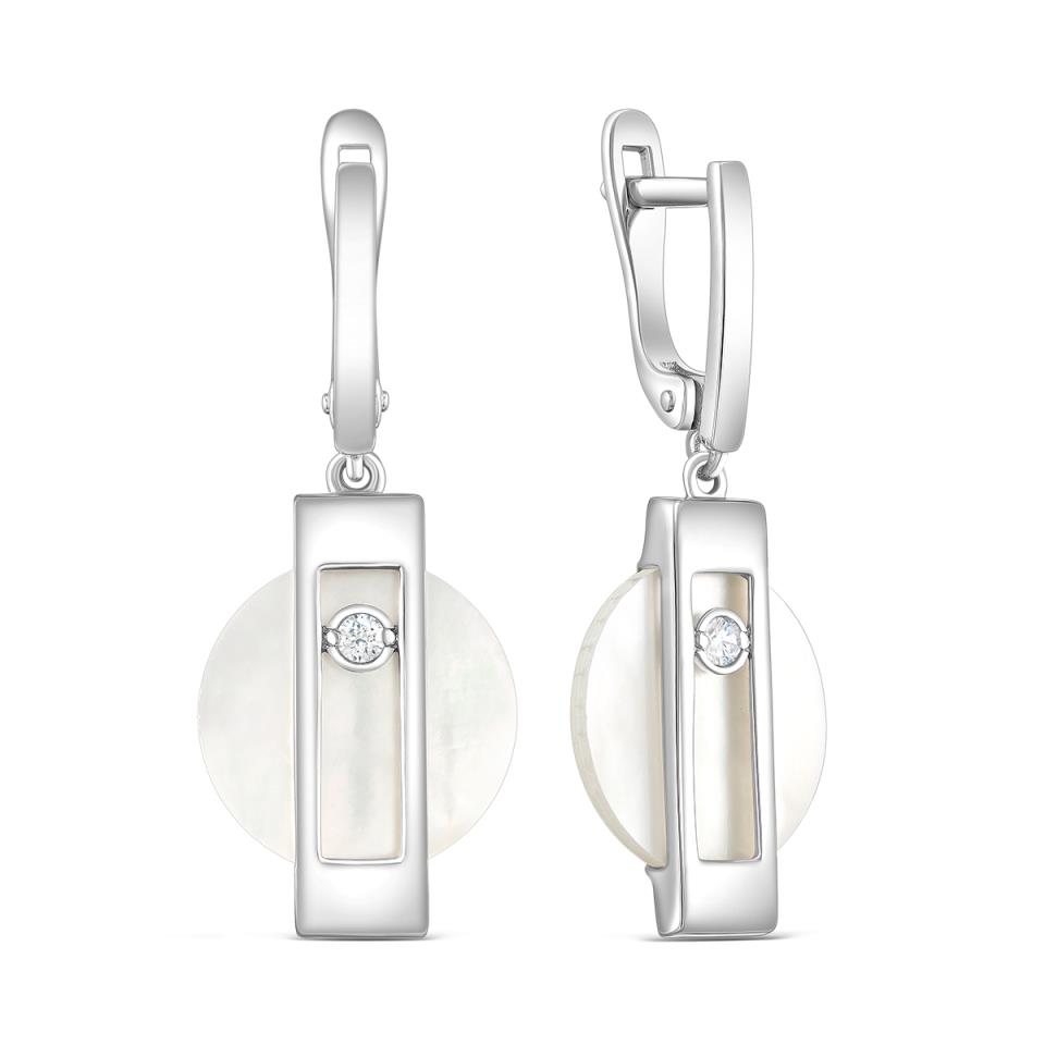 Серьги с перламутром и фианитами из серебра 925 пробы