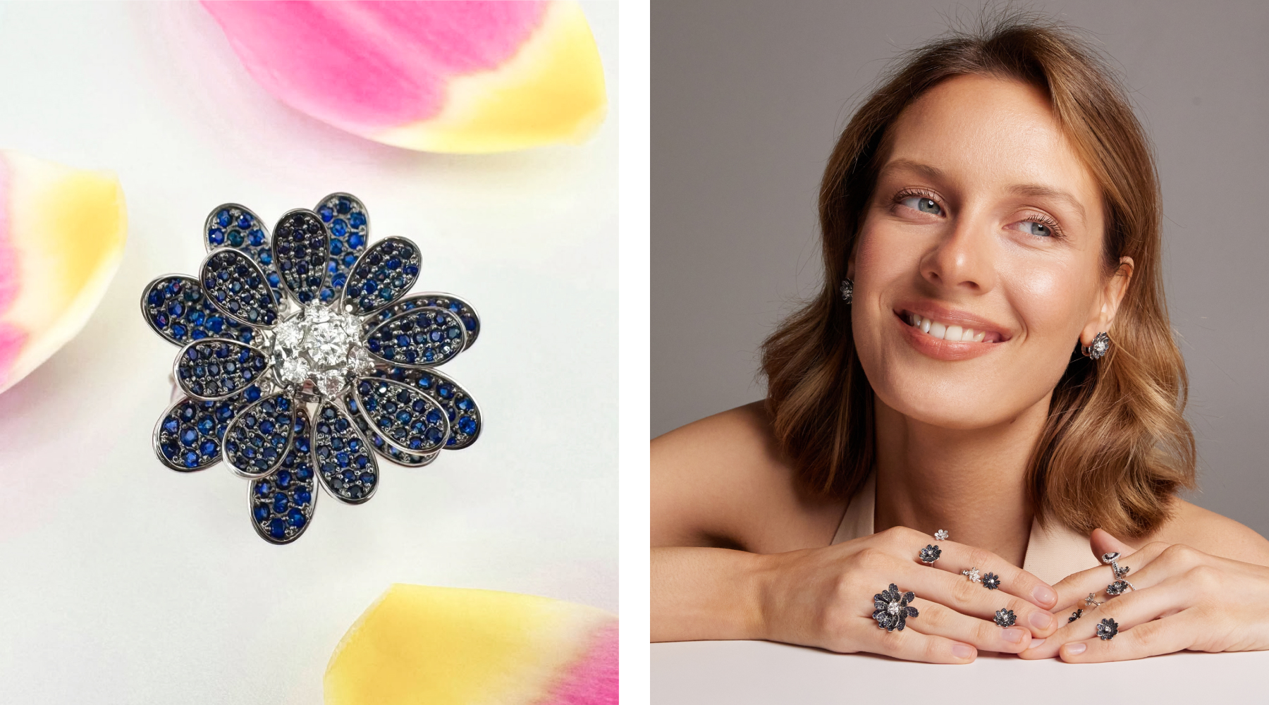 В ювелирных салонах ORO вы найдете все виды украшений с сапфирами: серьги, кольца, подвески и браслеты. Звездчатые минералы имеют форму кабошонов, а прозрачные разноцветные камни встречаются в огранках Овал, Багет, Круг, Груша, Принцесса и любых других. Благодаря обширной палитре оттенков можно встретить украшения в любом цвете золота. Синие камни чаще обрамлены оправой белого и классического красного золота. Сапфиры других оттенков гармонично смотрятся в оправе золота любого цвета: красного, лимонного или белого.
