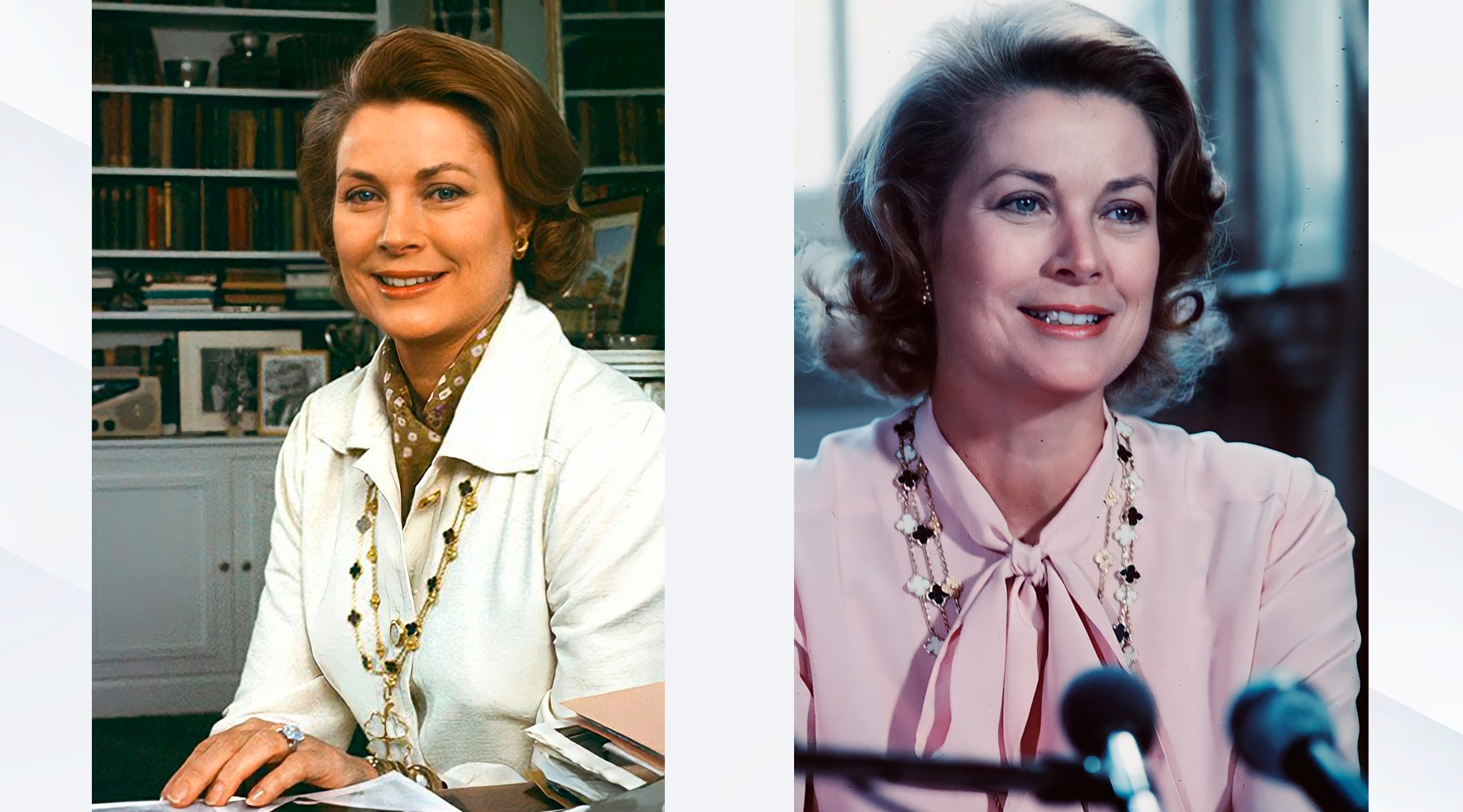Грейс Келли в золотых колье с клевером из оникса и перламутра