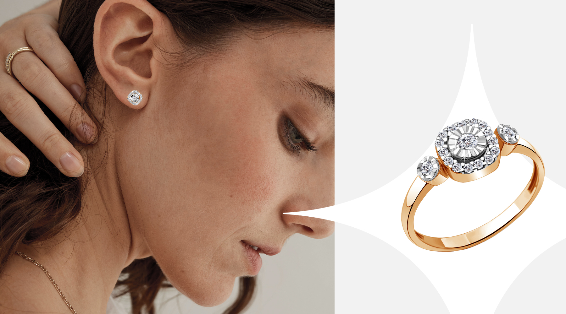 Украшения из данной коллекции добавят невероятное сияния каждому образу. Благодаря особенному элементу дизайна – вставке из белого золота, с нанесенными на ее поверхность гранями, удается не только подчеркнуть блеск бриллиантов, но и создать иллюзию крупного камня.