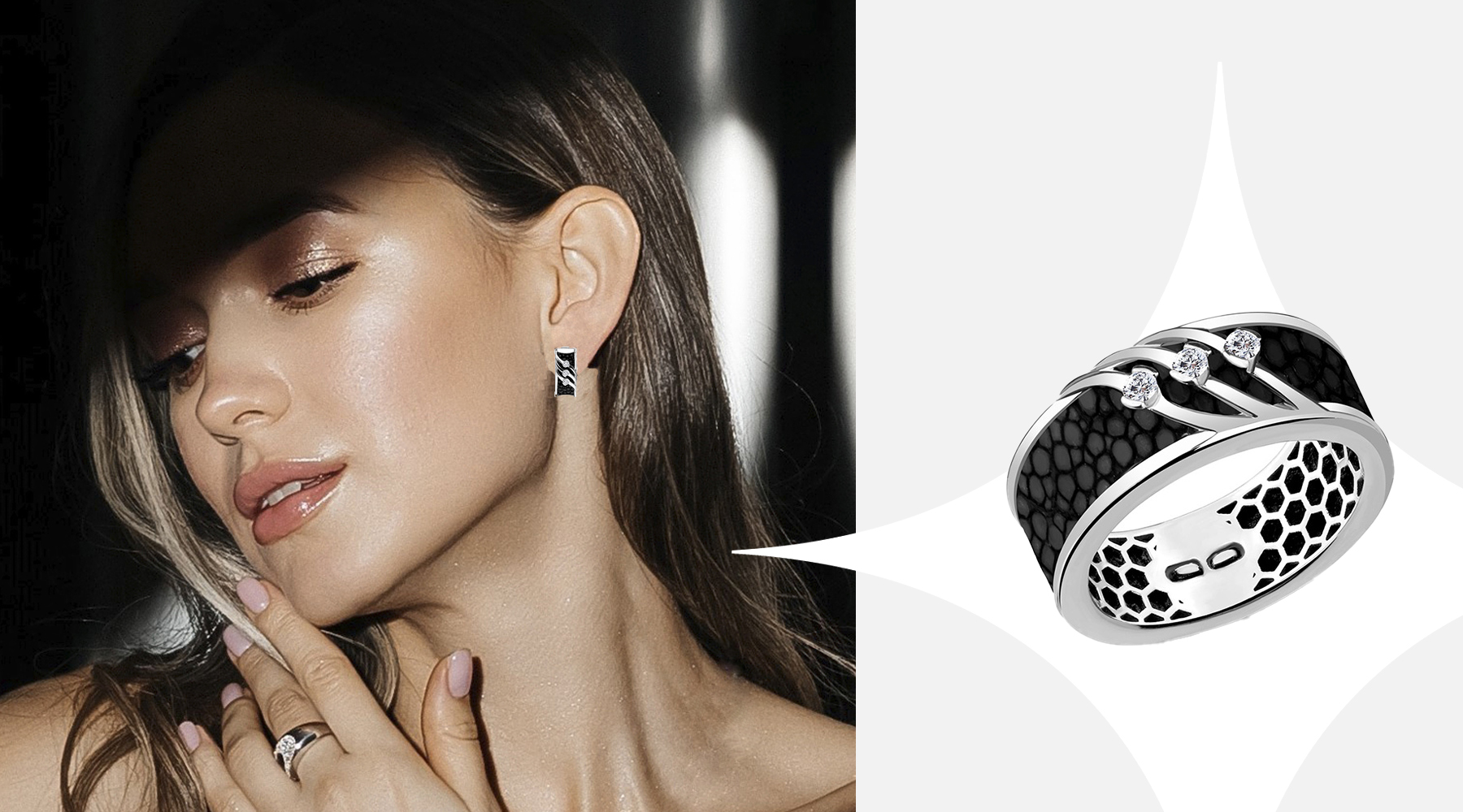 Уникальный материал кожи ската лежит в основе драгоценной коллекции. Его неповторимая красота и необычайная прочность вдохновили художников на создание статусных эксклюзивных украшений, сочетающих в себе стремление к лаконизму и восхитительную классику.