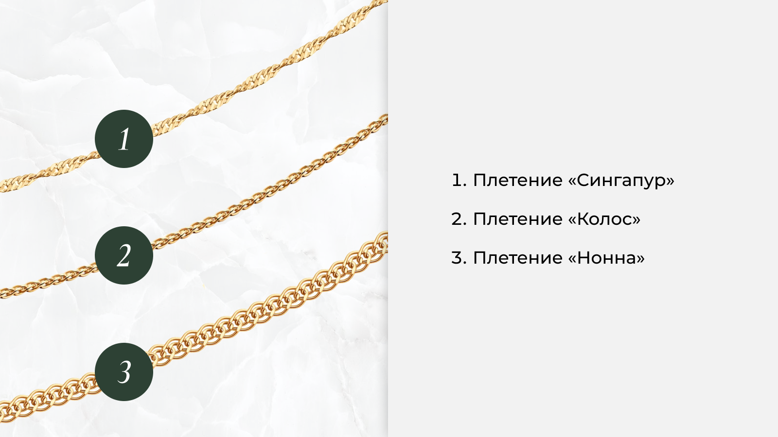 Плетение цепей — это ювелирное мастерство и искусство, которое объединяет в себе стиль, функциональность и индивидуальность. Каждое плетение обладает своими уникальными особенностями: от прочности и надежности до эстетической привлекательности. При выборе цепочки важно учитывать не только её внешний вид, но и то, как она будет сочетаться с образом, какой вес или подвеску она сможет выдержать, а также насколько она подходит для повседневного или вечернего выхода.