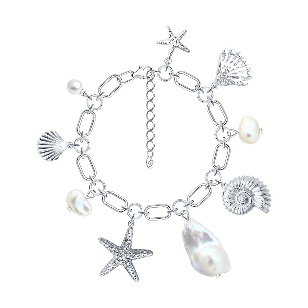 Браслет "Ракушки" с жемчугом из серебра 925 пробы арт. 94-350-00018-1